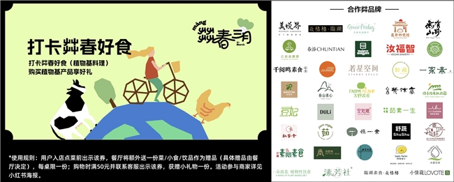 活动还联合了多家植物性餐厅与生活品牌,为参与者提供专属消费福利。活动期间,前往上海、北京、重庆、杭州等地的指定合作餐厅用餐,或于线上合作品牌平台购物,出示电子活动券即可获赠特色小食或精选小礼物。这一设计旨在让健康、可持续的选择在日常消费中更加可及、更具惊喜。