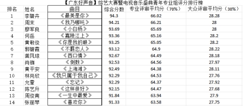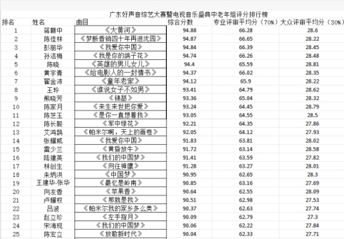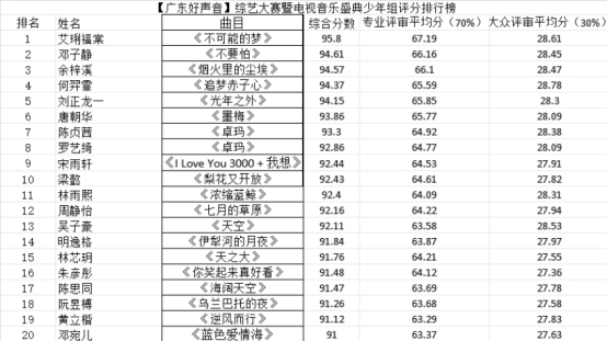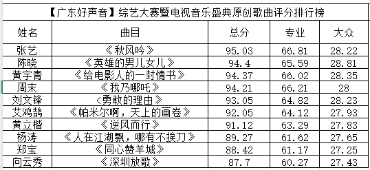 2025【广东好声音】综艺大赛暨电视音乐盛典原创歌曲排行榜公布如下: